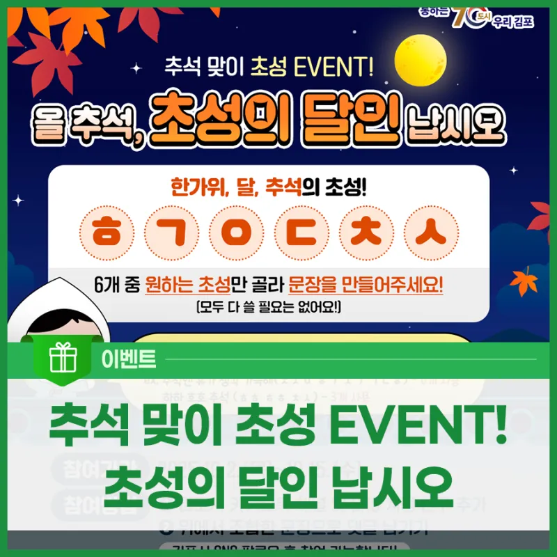 추석엔 휴가 생각 가득해 (ㅊㅅㅇ ㅎㄱ ㅅㄱ ㄱㄷㅎ) |