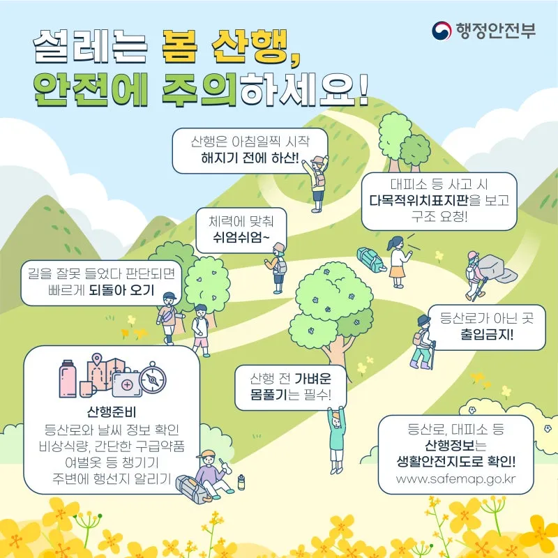 #산행 #등산 #봄산행 #봄등산 #등산안전수칙 #산에서길잃었을때 #조난당했을때 #행정안전부 #산행정보 #등산로