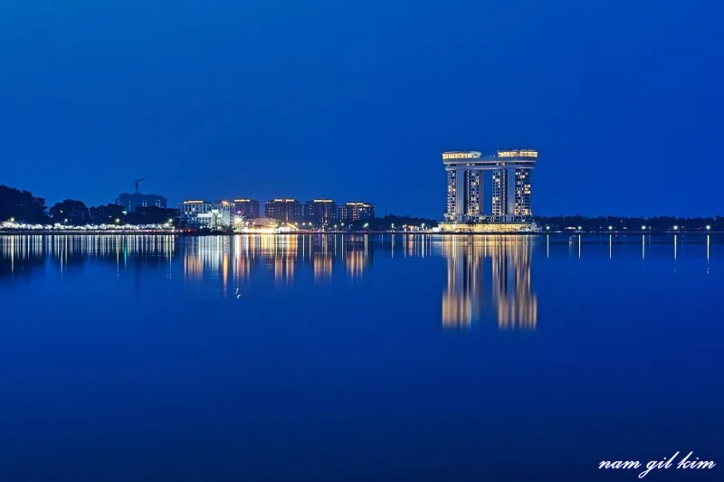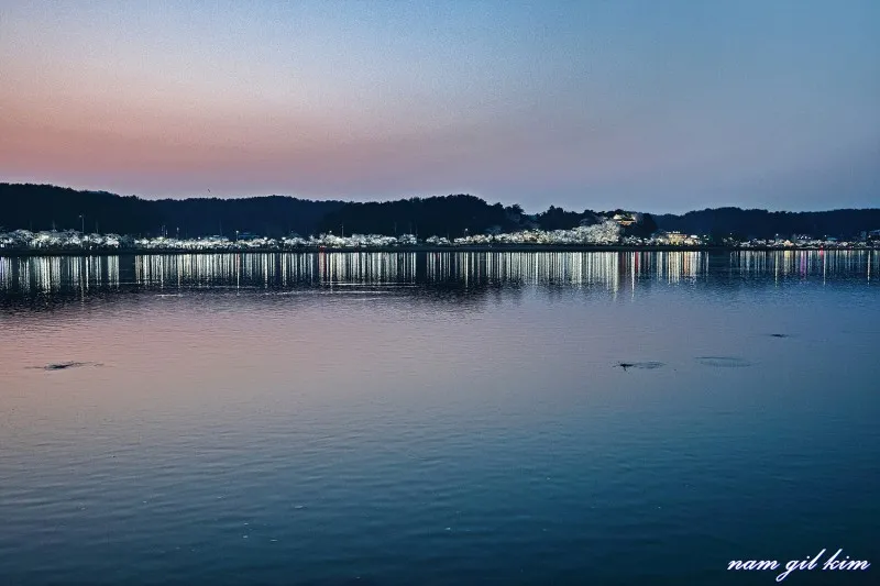 어둠이 깔리기 시작하자 경포대와 경포호수 주변에 조명이 켜지면서 아름다운 벚꽃 야경이 서서히 나타납니다.
