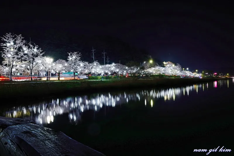 오늘 보여드리는 경포 벚꽃은 밤에 촬영한 사진으로 벚나무 마다 불빛이 켜진 아름다운 풍경을 보여드립니다.
