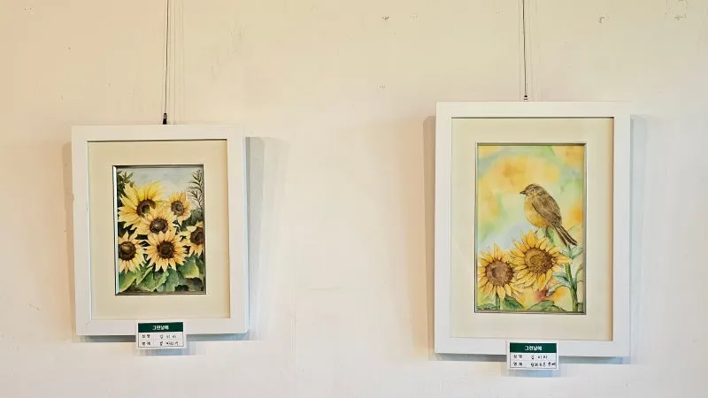 학생들이 정성껏 완성한 그림을 카페에