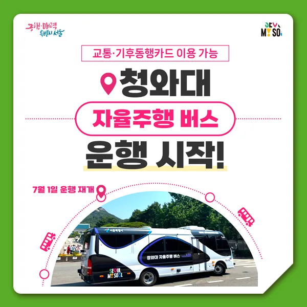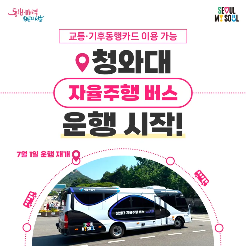 기후동행카드 사용 가능한 청와대 '자율주행 버스', 7월 1일부터 운영 재개