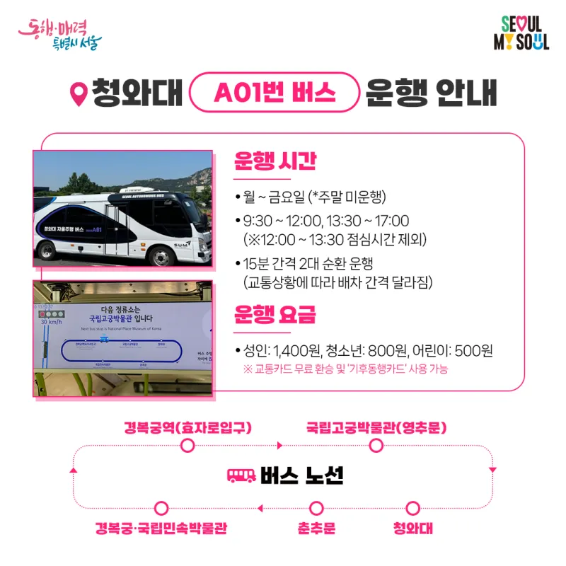 청와대 A01번 버스 운행 안내 |