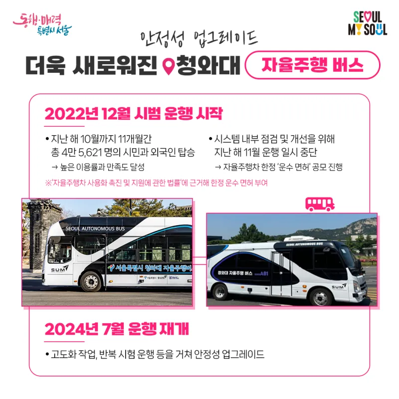 안정성 업그레이드 더욱 새로워진 청와대 '자율주행 버스' |
