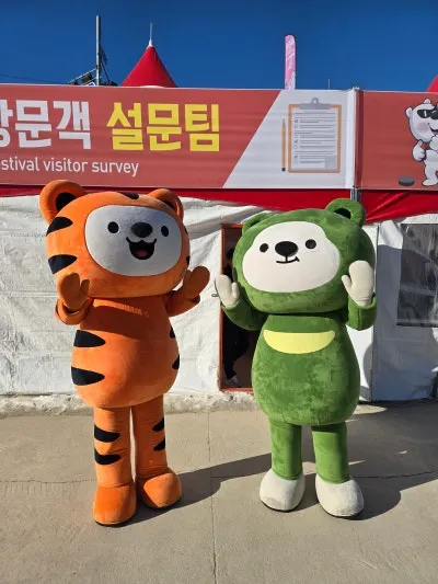 마스코트와 함께 📸기념촬영을 하며