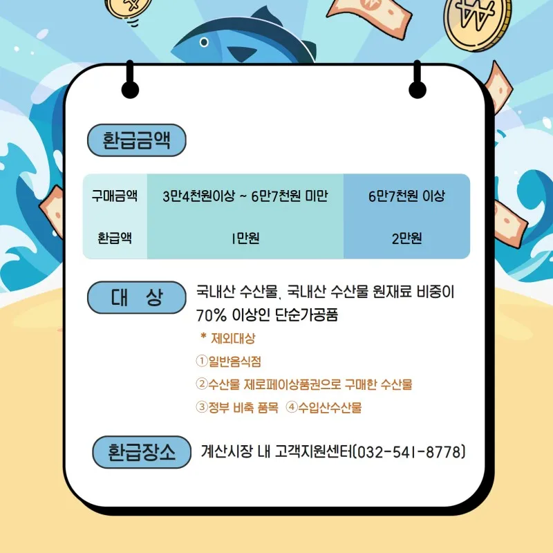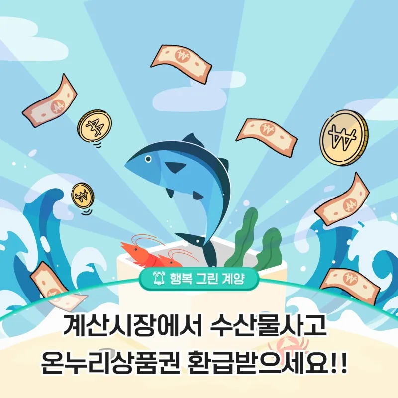 계산시장에서 수산물 사고 온누리상품권 환급받으세요!!!