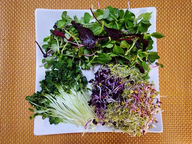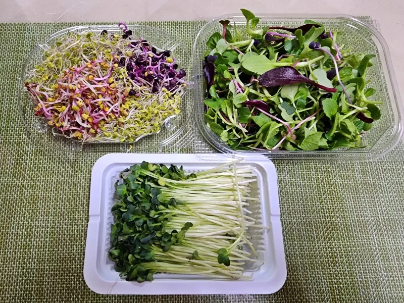 싹채소 또는 싹기름채소라고도 부르며 다 자란 채소보다 더 많은 영양소를 함유하고 있어 건강에 아주 좋습니다.