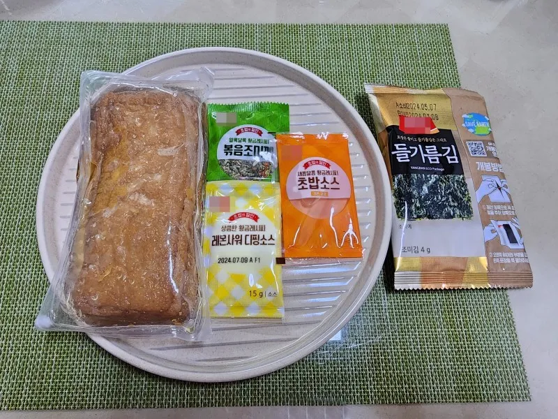 구입할 때 내용물로 들어 있는 재래김과 초밥소스,