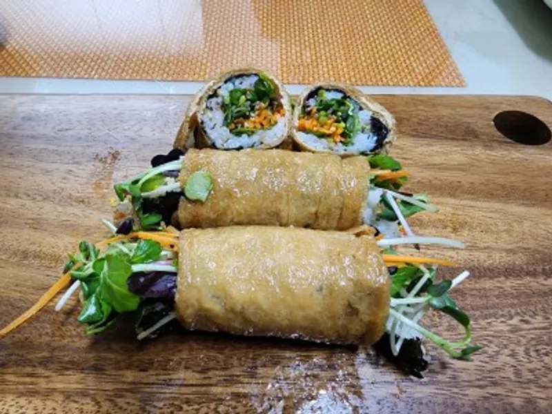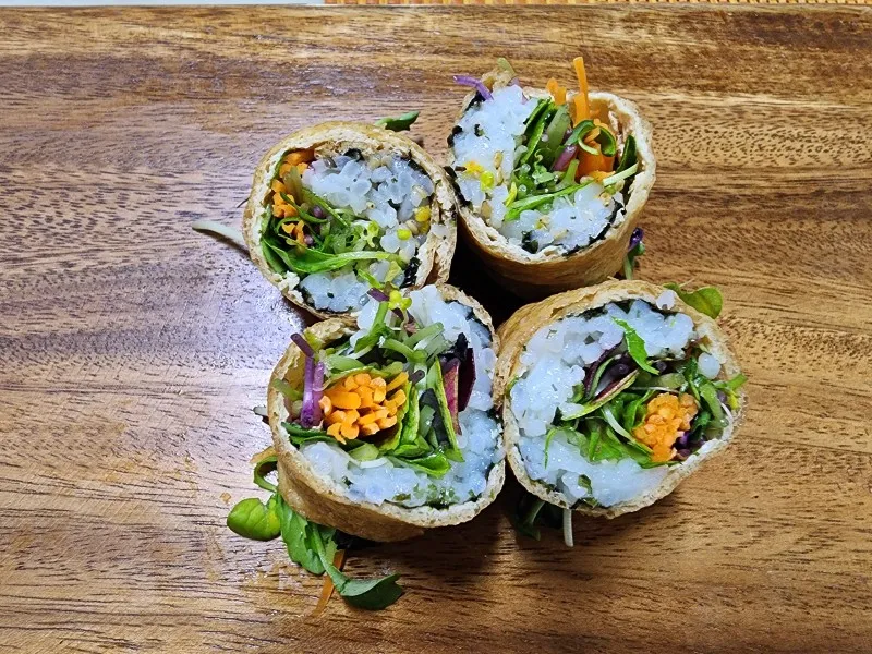 잘 말은 새싹채소 유부롤깁밥을 그대로 먹어도 되지만