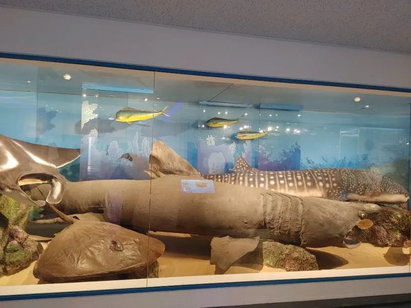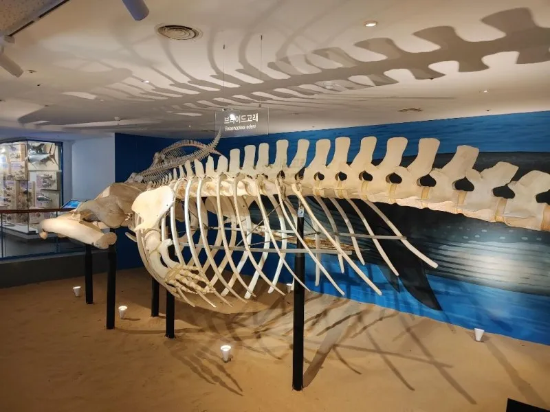 로비에는 거대한 참고래 골격 표본이 있고 안 쪽에도 다양한 생물 표본을 볼 수 있다.