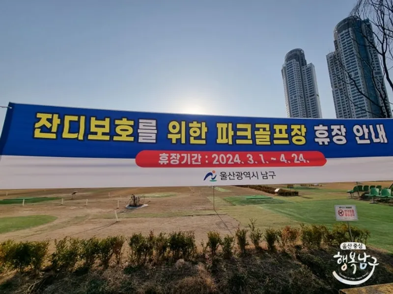 남구 태화강 파크골프장은 잔디 보호를 위해 휴장 기간으로 2024. 3. 1.~4. 24. 일까지 휴장 기간입니다.