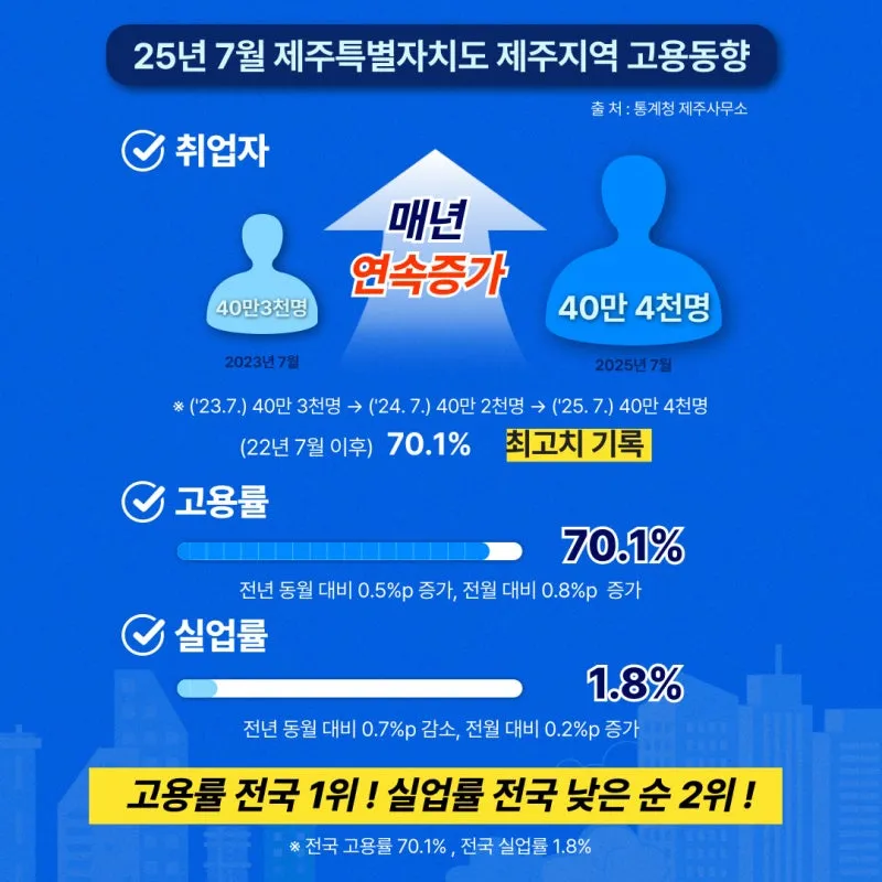 📌 “제주, 7월 고용률 70.1% 전국 1등!”
