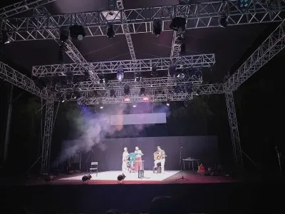대만 더블씨어터 극단의 The Way Back (돌아가는 길) 작품은 자아를 찾는 것을 테마로 "자신을 찾아가는 여정" 이란 주제를 집, 전장, 도시, 집 이렇게 4막으로 구성한 우리가 삶 속에서 자연스레 만들어온 다양한 인상과 정체성를 해체하고 재구성한 작품이라고 하는데요, 거창에서 처음 보인 공연이라고 합니다. 연극을 보는 동안 상처받은 마음의 치유 과정을 전쟁으로 산산조각 나 버린 소년의 몸은 사지로 흩어지고, 소년의 오른손이 기억하는 기타 연주를 따라 흩어진 다른 몸을 찾아가는 연출이 정말 좋았는데요, 멋진 작품으로 잠시 더위를 잊은 듯 했답니다.