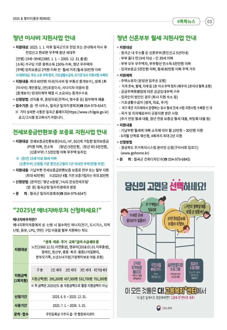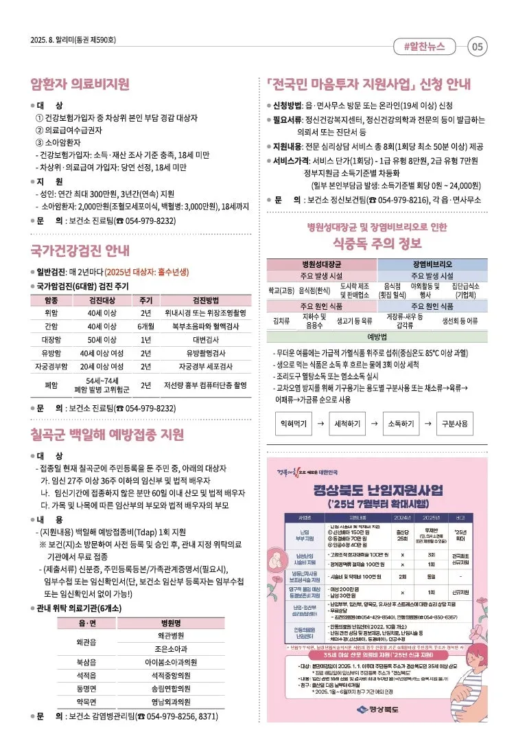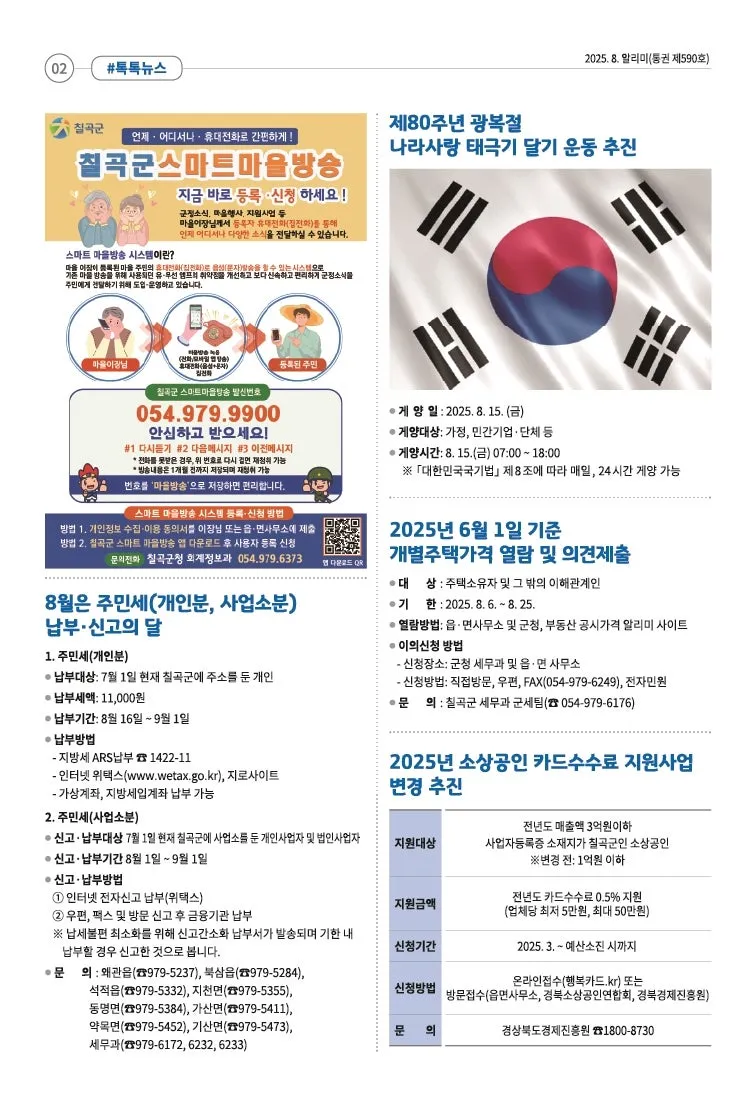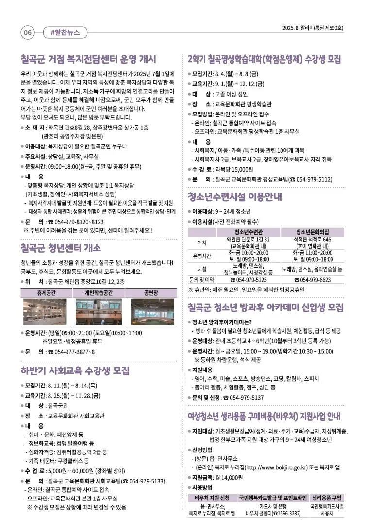 [희망칠곡] 2025년 8월 알리미를 안내해드립니다