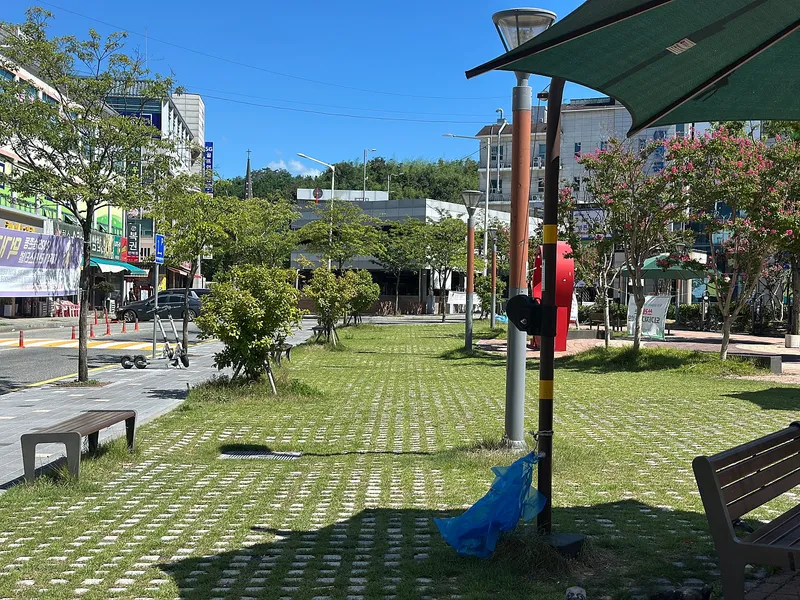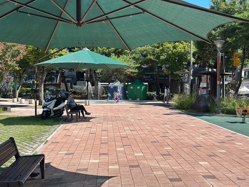 공원 곳곳에 쉴 수 있는 벤치도 여럿 보였고, 차양막도 설치되어 있어서 조금이나마 더위를 피할 수 있었습니다.