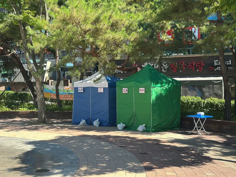 송촌어린이공원 한쪽에 간이 탈의 시설도 남성용, 여성용 구분되어 설치되어 있어서 물놀이 끝나고 편하게 이용할 수 있을 듯합니다.