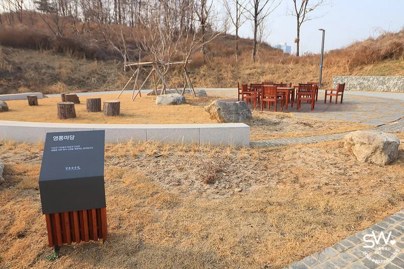 신설된 놀이터에는 이미 많은 아이들이 있었습니다. 요즘엔 흙으로 되어 있는 놀이터를 찾기 쉽지 않은데 정겨웠어요. 누구나 그렇듯이 어릴 때 흙으로 터널도 만들고 집을 짓던 시절이 있었으니까요. 가끔씩 그때가 그리워집니다. 영흥숲공원은 작년에 신축돼서 깔끔하고 볼거리가 많아 꼭 한번 소개 드리고 싶었던 곳입니다. 공원을 둘러보다가 수목원도 같이 갈 수 있는 만큼, 올봄에 한번 다녀와보시는 건 어떠세요?