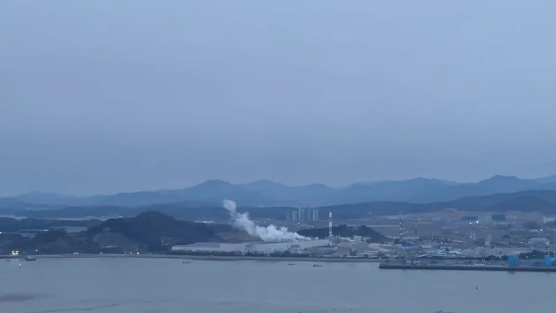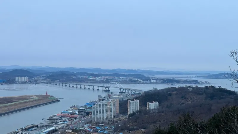 해돋이 공원 안에 있는 팔각정에 올라서 일출을 바라봤습니다. 팔각정에서 바라보면 북쪽의 동백대교부터 중앙동, 명산동 까지 조망할 수 있습니다.