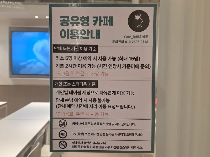 놀라운 하루의 또 다른 장점인 공유형 카페의 모습입니다. 회의를 하거나 모여서 토론을 하는 장소로도 활용이 가능합니다. 역시나 깔끔하고 세련된 느낌이 매력적이었습니다.