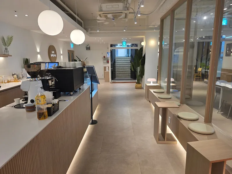 나무가 주는 안정감과 편안함을 기본으로 하면서도 세련된 느낌도 빠지지 않는 인테리어가 인상적입니다. 편안하게 공부하거나, 데이트 코스 혹은 친구들과 담소를 나누는 장소로도 추천합니다. SNS에 활용할 사진을 촬영할 수 있는 예쁜 카페로도 추천합니다.