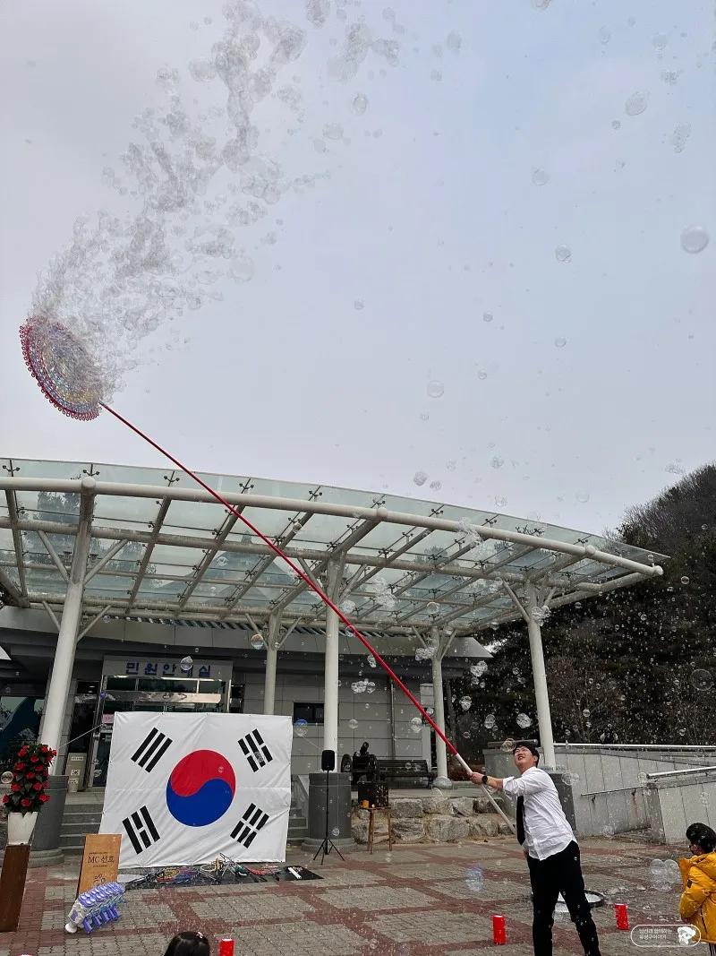 호국 영웅분들께 감사를 전하고, 태극기에 실어 보내는 추모하는 마음이 가득했던 시간이었습니다. 우리가 우리 땅의 주인이 되기까지, 두발로 서 있는 이 땅이 평화를 꽃피우고 희망을 노래하기까지 삼일절 소중한 추억을 남겨주신 버블아티스트MC 선호님 정말 감사드립니다.