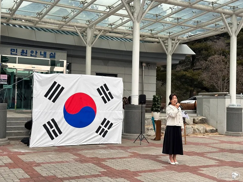 국립대전현충원 정문 앞 민원실 바로 앞에 하늘나라 우체통이 있습니다. 하늘나라 우체통 앞에서 1시에 공연이 시작되었는데요. 약 1시간 남짓 진행되었습니다. 삼일절 현충원을 찾은 분들께서도 오늘의 공연을 호응도 해주시고 공감하며 함께 관람해 주셨어요.