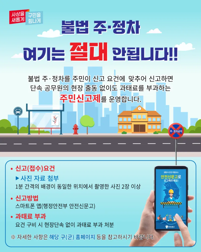 불법 주·정차를 주민이 신고 요건에 맞추어 신고하면
