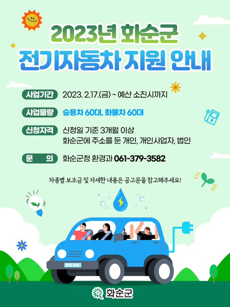 ▼2023년 화순군 전기자동차 민간 보급사업 공고문▼