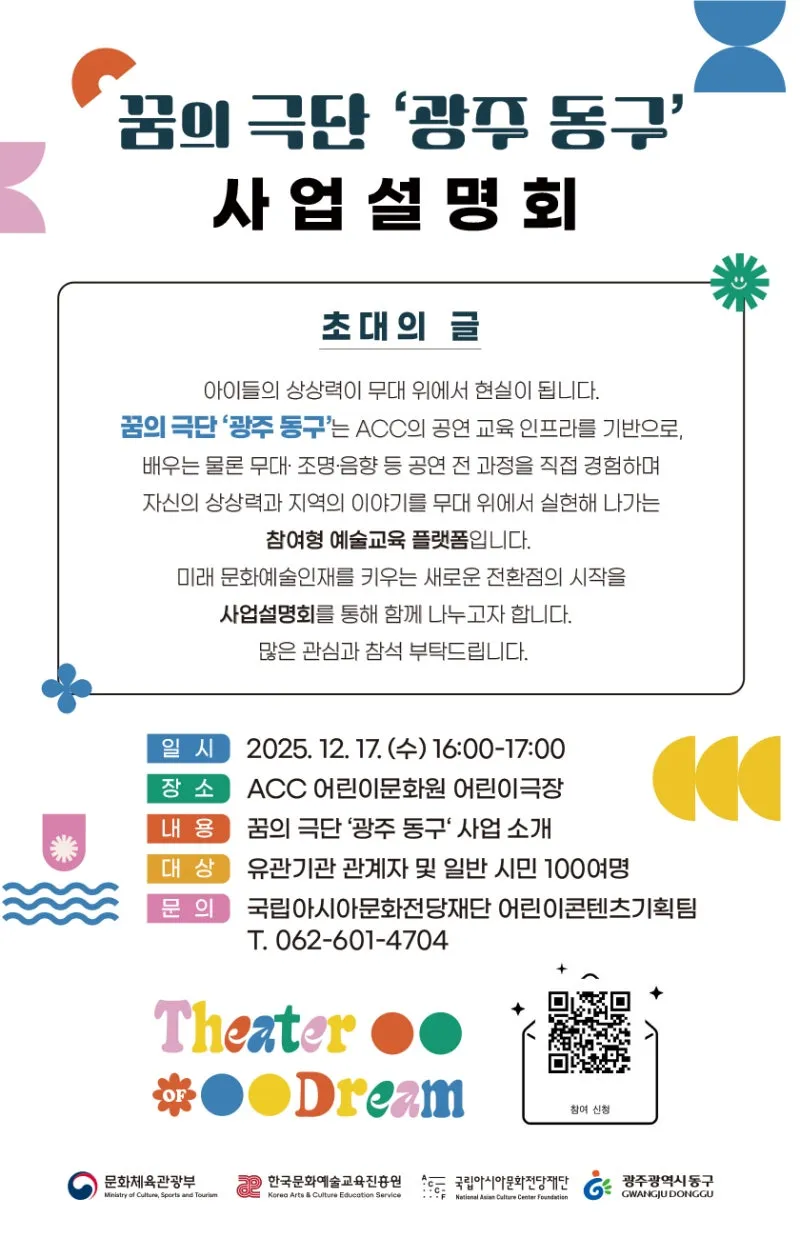 지역 기반 어린이·청소년 창작예술교육 플랫폼인 「꿈의 극단 광주 동구」를 추진하고자 합니다.