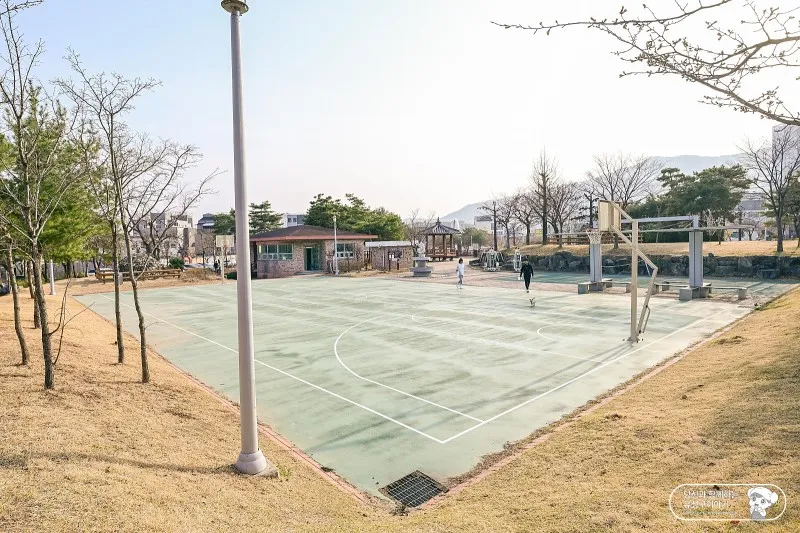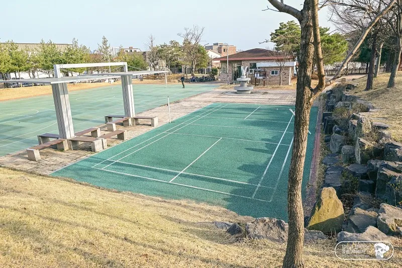 주차장 방향으로 근린공원을 향하면 넓은 농구 및 배드민턴 코트를 보실 수 있습니다. 지인분들과 여유가 되신다면 이 근처에서 가볍게 스포츠를 즐길 수 있습니다.