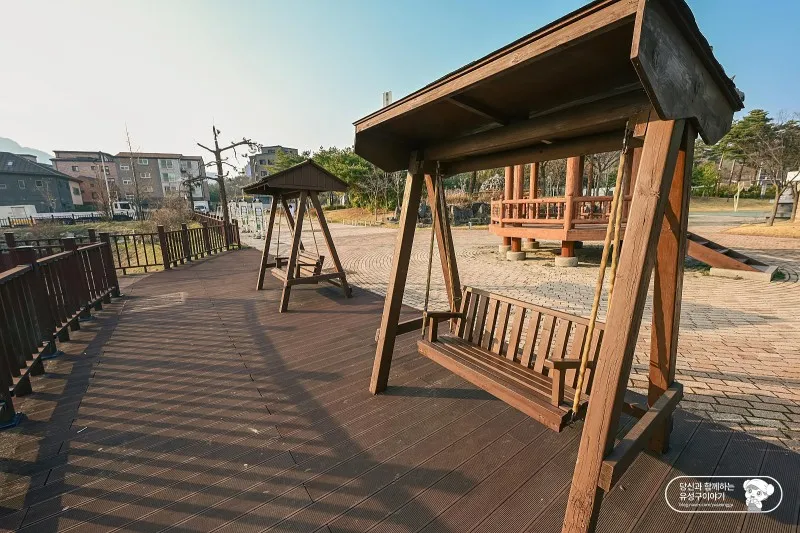 근린공원 근방에는 화산천이 흐르고 있으며, 정자와 그네도 놓여 있는 것을 볼 수 있었습니다.