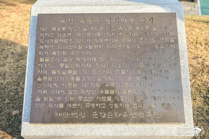 복용동 당산마을은 학하지구 도시개발사업을 통해 유적이 발견된 것을 알 수 있었습니다. 여러 시대에 걸쳐 다양한 유물들이 출토되었다고 합니다.