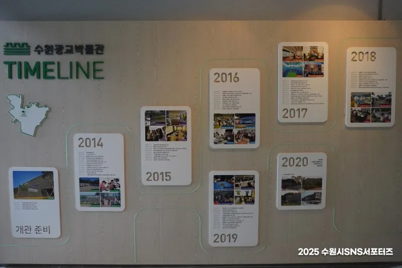 수원광교박물관의 발전상을 한눈에 볼 수 있도록 깔끔하게 정리되어 있습니다.