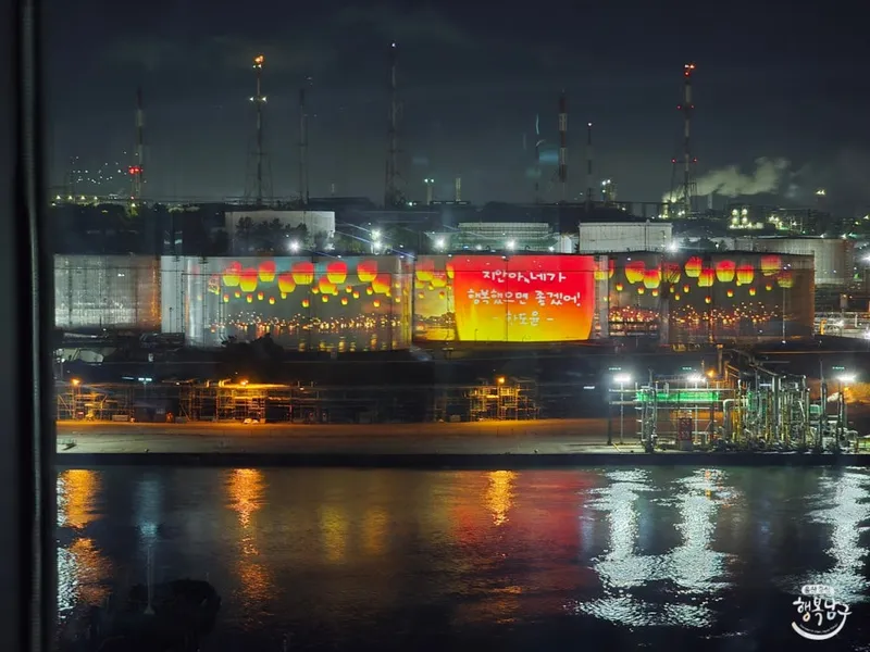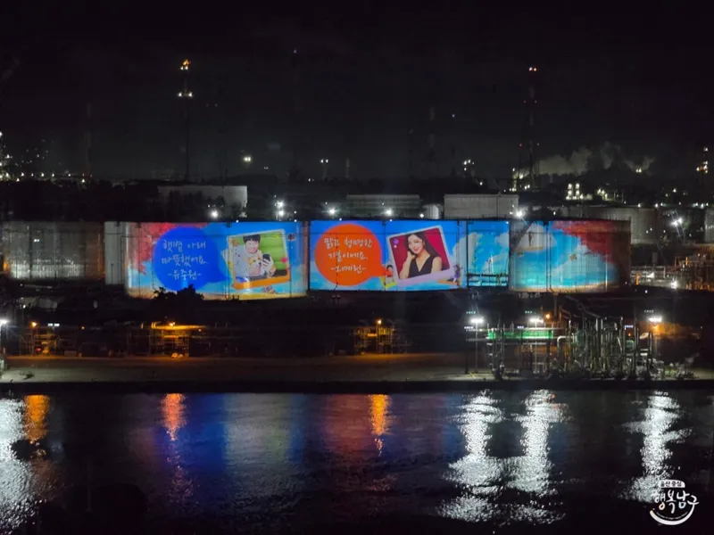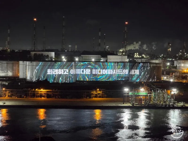 장생포 에 있는 울산 석유화학 산업의 상징, SK이노베이션 울산콤플렉스의 거대 석유저장탱크가 밤이 되면 빛나는 거대한 스크린으로 변신합니다. 울산 남구청과 SK이노베이션 울산콤플렉스가 손을 잡고 선보인 미디어 파사드 프로젝트로, 실제 운영 중인 산업시설를 활용해 상설 야경 컨텐츠를 만들어낸 국내 최초의 사례인데요.