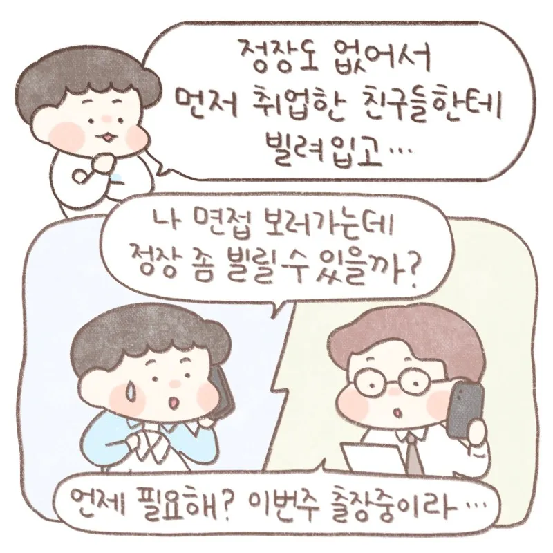 먼저 취업한 친구들한테 빌려 입고...