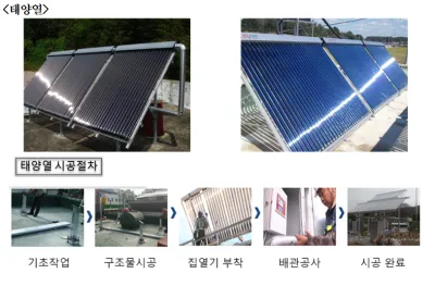 태양광(전기), 태양열(온수), 지열(난방) 설치비의 약 80% 지원