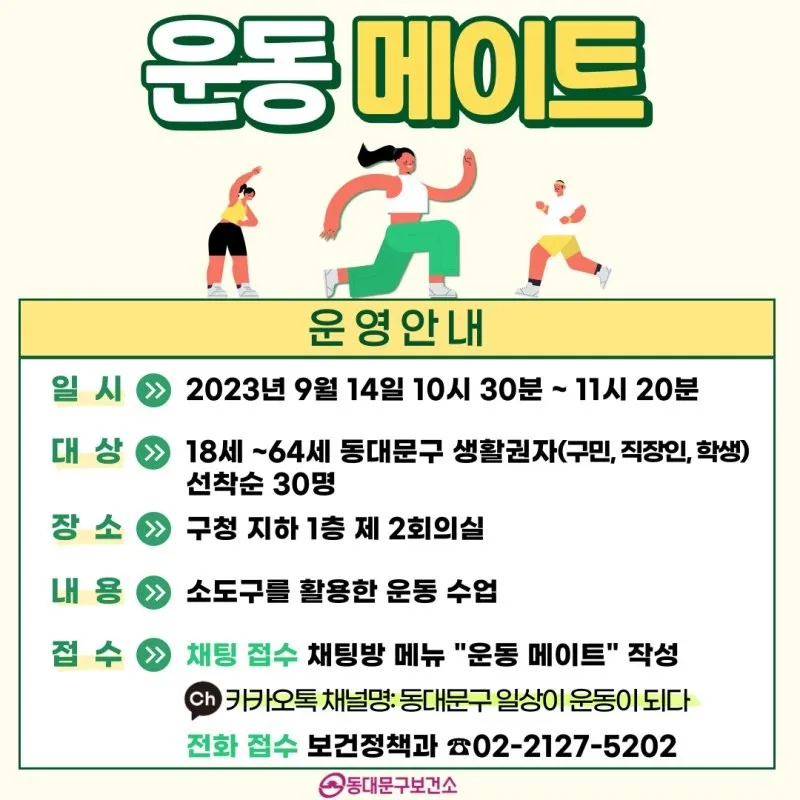 같이 운동할 사람 구함♂️ 동대문구 <운동 메이트> 신청 안내!