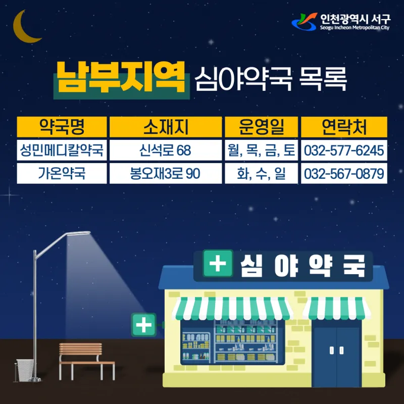 서구는 밤에도 약국을 갈 수 있다?! 서구 공공심야약국 안내