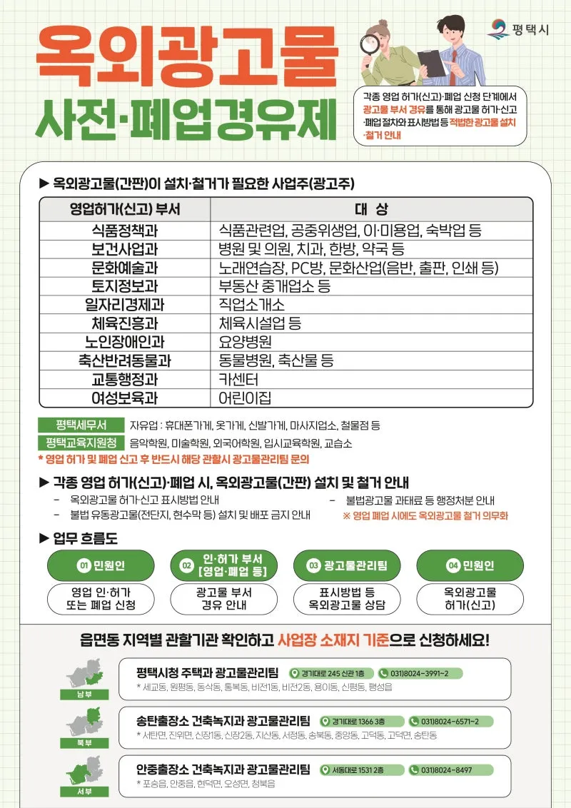 평택시 옥외광고물 ‘사전·폐업 경유제’ 완벽 정리! 설치·철거 절차 한눈에 보기