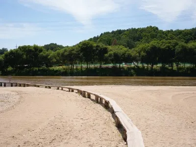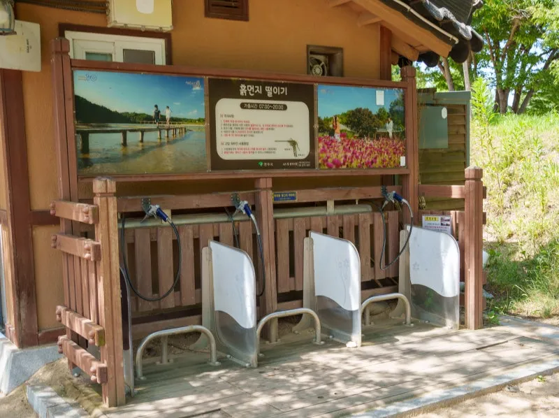 외나무다리 앞에는 모래사장이 펼쳐져 있어 건너고 돌아올 때는 흙먼지 털이기를 이용해 신발에 묻은 모래를 털어내면 좋습니다.