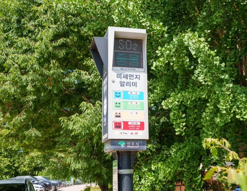 마을에는 미세먼지 알리미도 설치되어 있어 대기 상태를 확인할 수 있습니다.