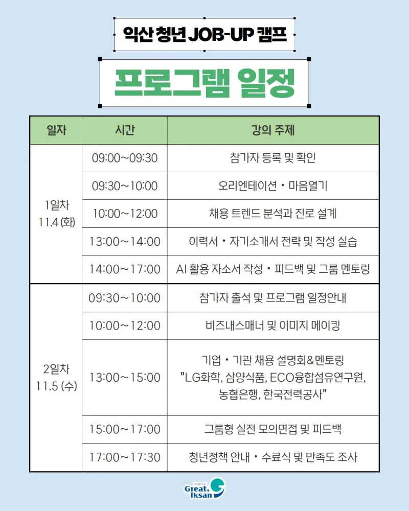 #익산시 #청년시청 #익산청년잡업캠프 #취업멘토링 #AI자소서 #모의면접 #익산청년