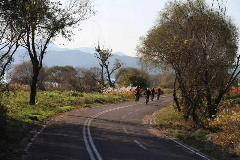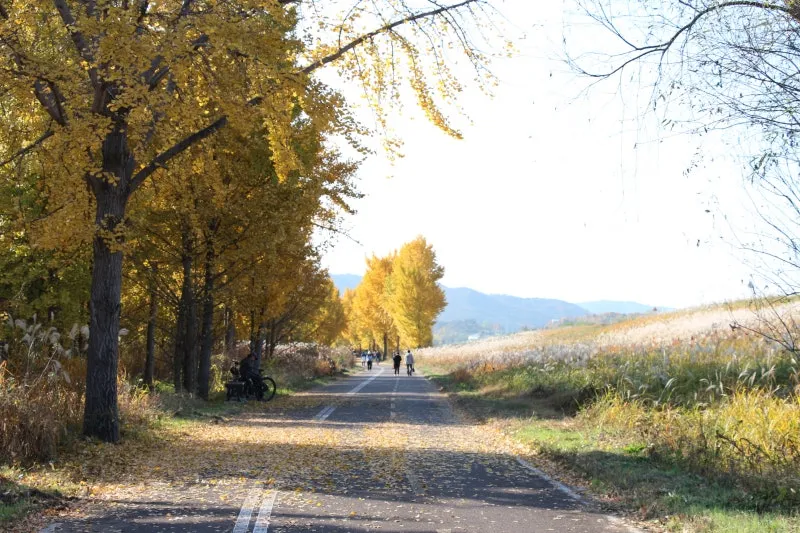 주말을 맞이하여 라이딩하는 사람들도 은행나무 숲길로 고령의 가을을 만끽하고 있더라고요
