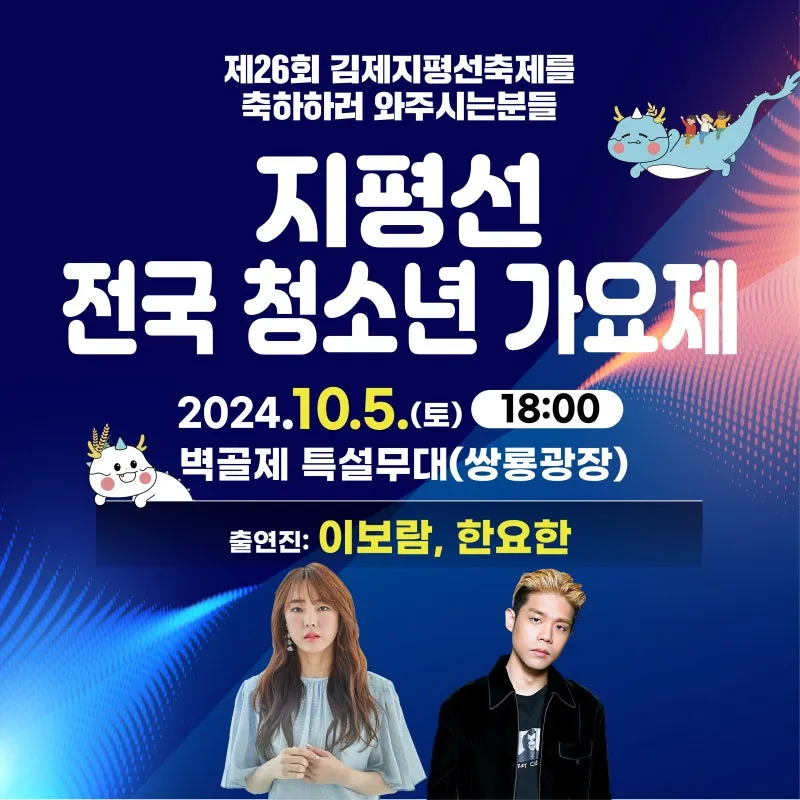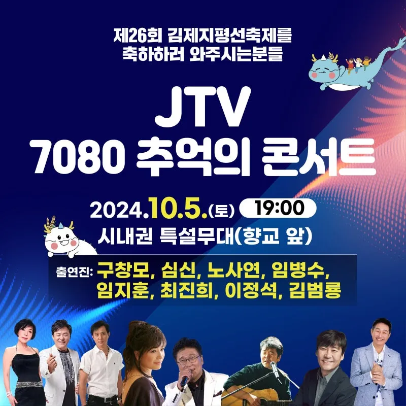 10월 5일 토요일, 주말을 맞이한 오늘은 벽골제 특설무대에서 '제29회 지평선 전국 청년 가요제'가 열리며, 향교 앞 특설무대에서는 '7080 추억의 콘서트'가 준비되어 있습니다!