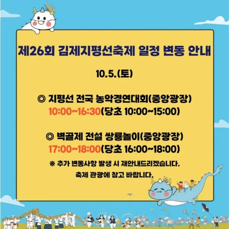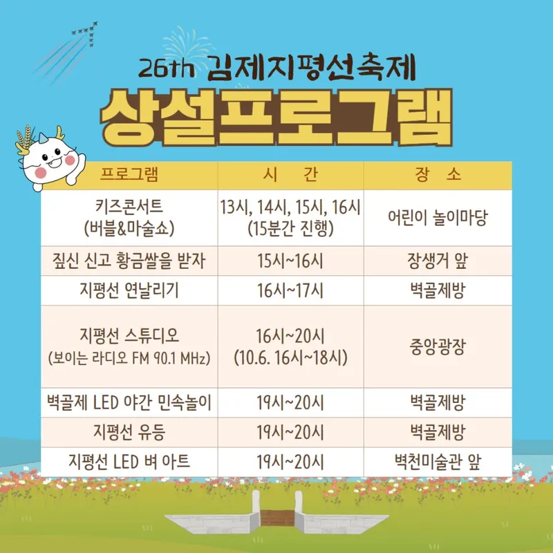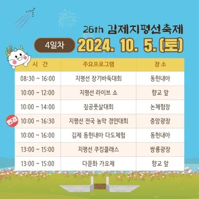 김제지평선축제 10월 5일 4일차 일정 안내