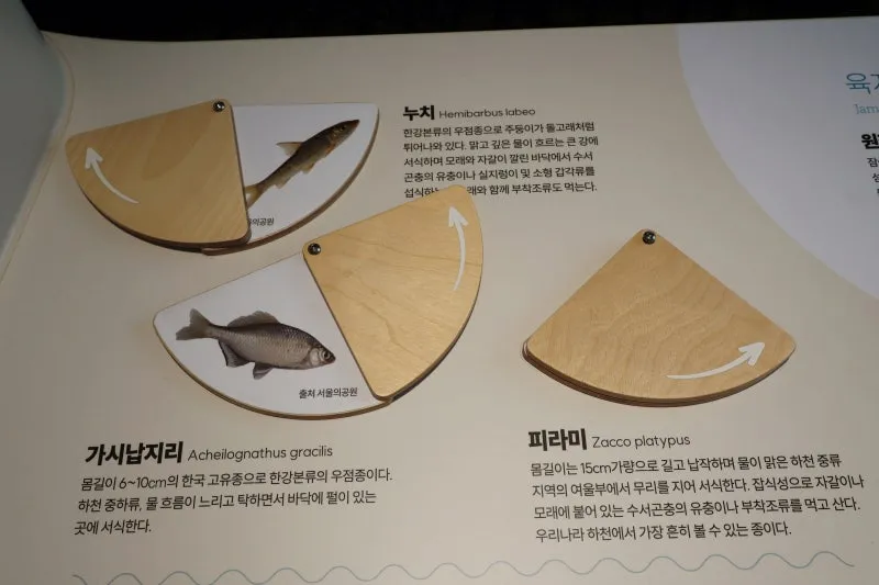 전시관 통로에서 현무의 흔적이 있는 전시관 2관 내부로 들어가려면 문제를 하나 더 풀어야 한다. 자료들을 뒤적이며 한강에 사는 물고기, 잠실에 얽힌 이야기 등을 수집하다 보면 정답을 찾을 수 있다.