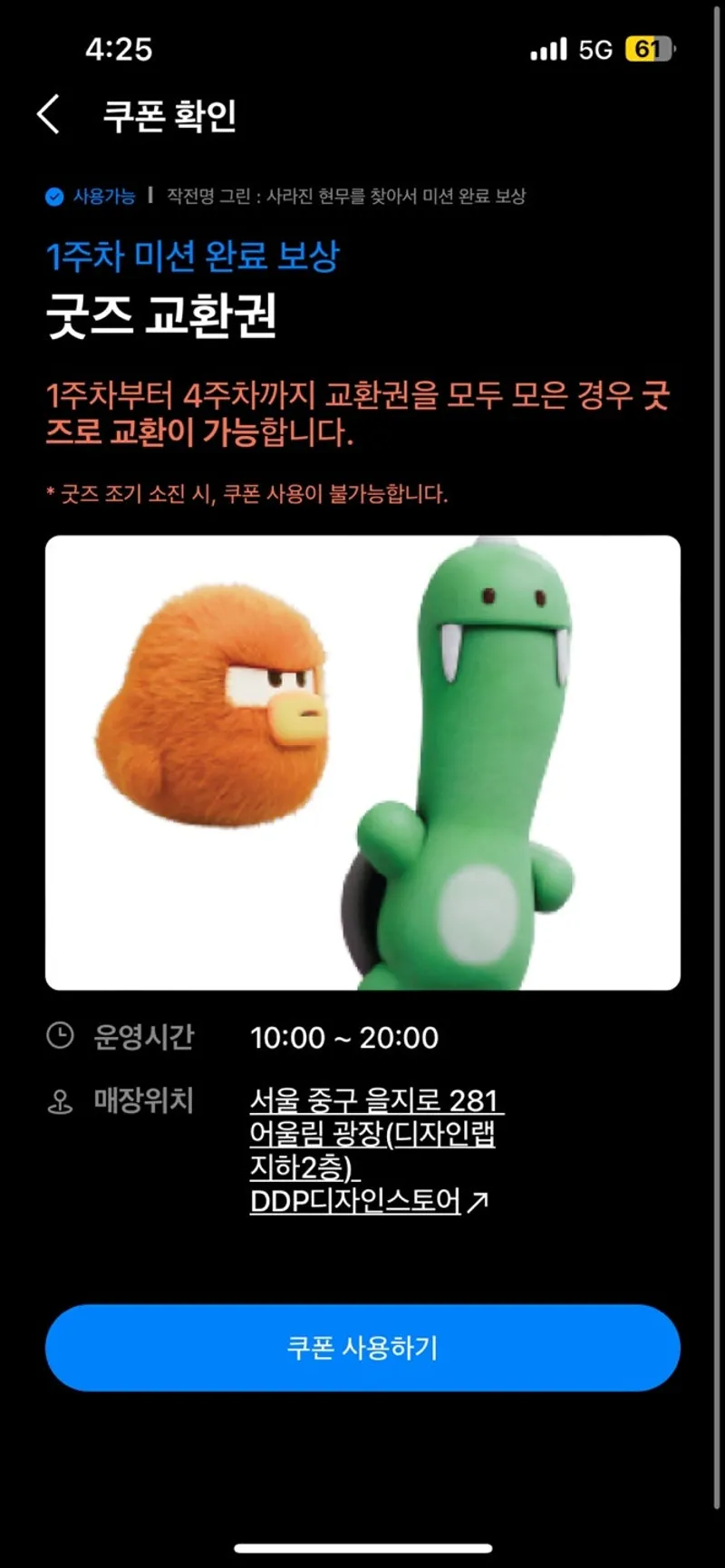 '서울 마불' 1주차 미션, ‘작전명 그린: 사라진 현무를 찾아서’는 7호선 자양역 4번 출구에서 시작된다. 여기에서 게임 시작 버튼을 누르면 다음 장소가 주어진다. 서울 마불은 첫 시작 장소를 제외하고는 게임 속 이야기를 따라 위치가 순차적으로 공개된다. 미션을 해결하기 전까지는 어디로 이동할지 모른다는 기대감과 설렘을 느낄 수 있다.