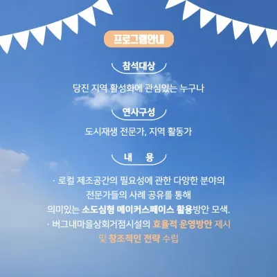 당진ㆍ합덕 지역 활성화 관심있는 기획자 및 시민 |
