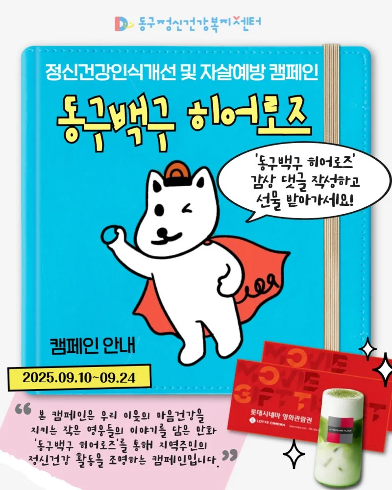 “동구백구 히어로즈 감상 댓글 작성하고 선물 받아가세요!”