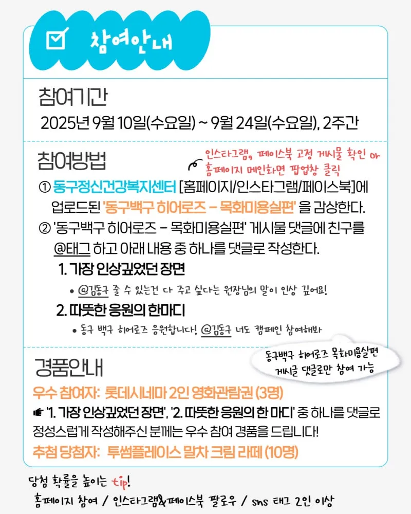 ✔ 동구정신건강복지센터 인스타그램, 페이스북 팔로우하기